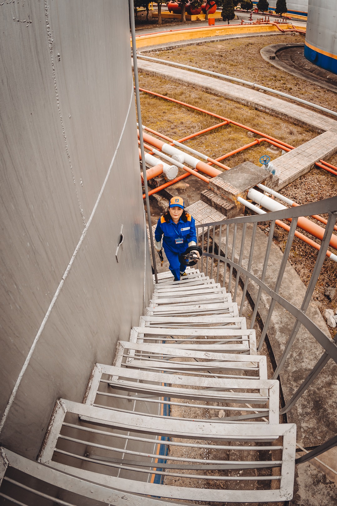 Mùa đông hay mùa hạ, trời nắng hay trời mưa… 5h00’sáng hàng ngày chúng tôi luôn có mặt tại Tổng kho để thực hiện nhiện vụ…; Bình quân hàng ngày leo lên, leo xuống 13 bể chứa, tương ứng với leo lên, leo xuống hàng nghìn bậc cầu thang! Để có những con số chính xác về lượng xăng dầu trong từng bể chứa phục vụ cho việc lập kế hoạch nhập, xuất hàng hóa hàng ngày của Công ty.
