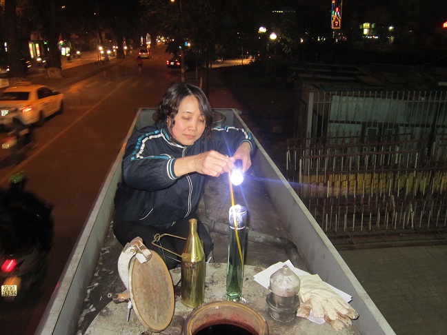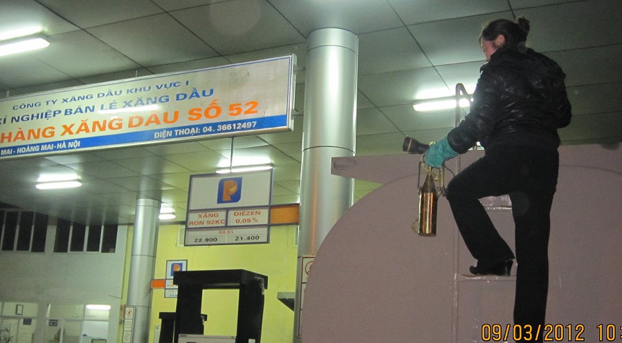 Những dáng người nhỏ bé mà dẻo dai đang đảm nhiệm những công việc tỷ mỷ, từ nhà đến cửa hàng họ bắt tay ngay vào công việc, cặm cụi thực hiện nhiệm vụ nhập hàng để đảm bảo đủ hàng phục vụ mọi nhu cầu của khách hàng vào ngày hôm sau; họ đo bể kiểm tra số lượng, đo nhiệt độ, tỷ trọng để kiểm tra chất lượng,; kiểm tra an toàn PCCC, đo đo, tính tính… ; họ chèo lên, chèo xuống Ôtô Xitéc, thực hiện mọi quy trình thao tác để đảm bảo tuyệt đối an toàn trong suốt quá trình nhập hàng từ việc mở van, mở bể đến việc nối ống nhập, họng nhập kín với hệ thống thu hồi hơi, rồi kết nối hệ thống tiếp địa.v.v..Mọi việc diễn ra đều rất khẩn trương, tỷ mỷ và chính xác nhằm hoàn thành tốt công việc của mình vừa để kịp nhập hàng cung cấp cho những giờ bán hàng ngay sau đó, nhưng cũng vừa phải đảm bảo tính chính xác cao trong từng công đoạn.
