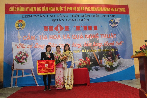 * Tạo điều kiện cho chị em tham gia hưởng ứng cuộc thi do các cấp phát động, ngày 3/3/2012 chị em nữ CĐ văn phòng Công ty tham gia Hội thi cắm, tỉa hoa và quả nghệ thuật với chủ đề “Phụ nữ Long Biên duyên dáng, đảm đang”.
