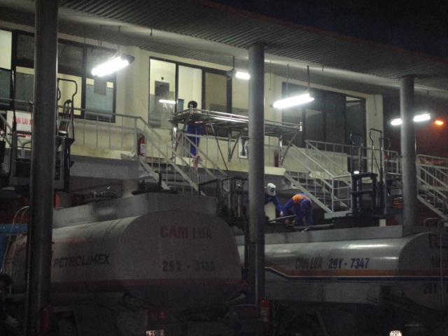 Thực hiện các thao tác xuất hàng ban đêm tại Tổng kho Xăng dầu Đức Giang