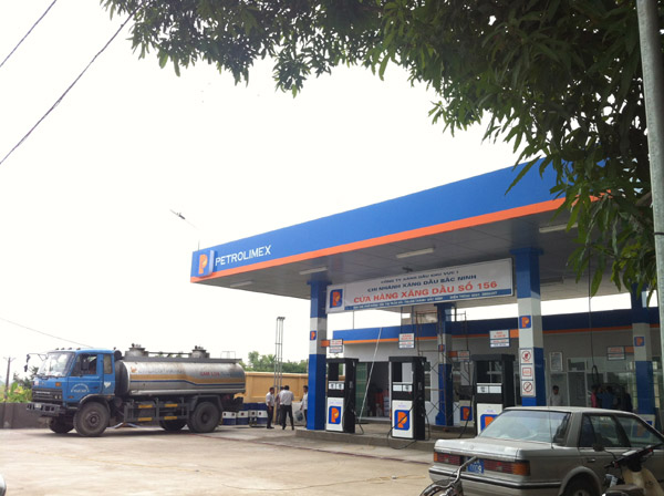| CHXD số 156 Petrolimex Hà Nội tại ngã tư Đông Côi Thị trấn Hồ, huyện Thuận Thành, tỉnh Bắc Ninh trong giờ nhập hàng |